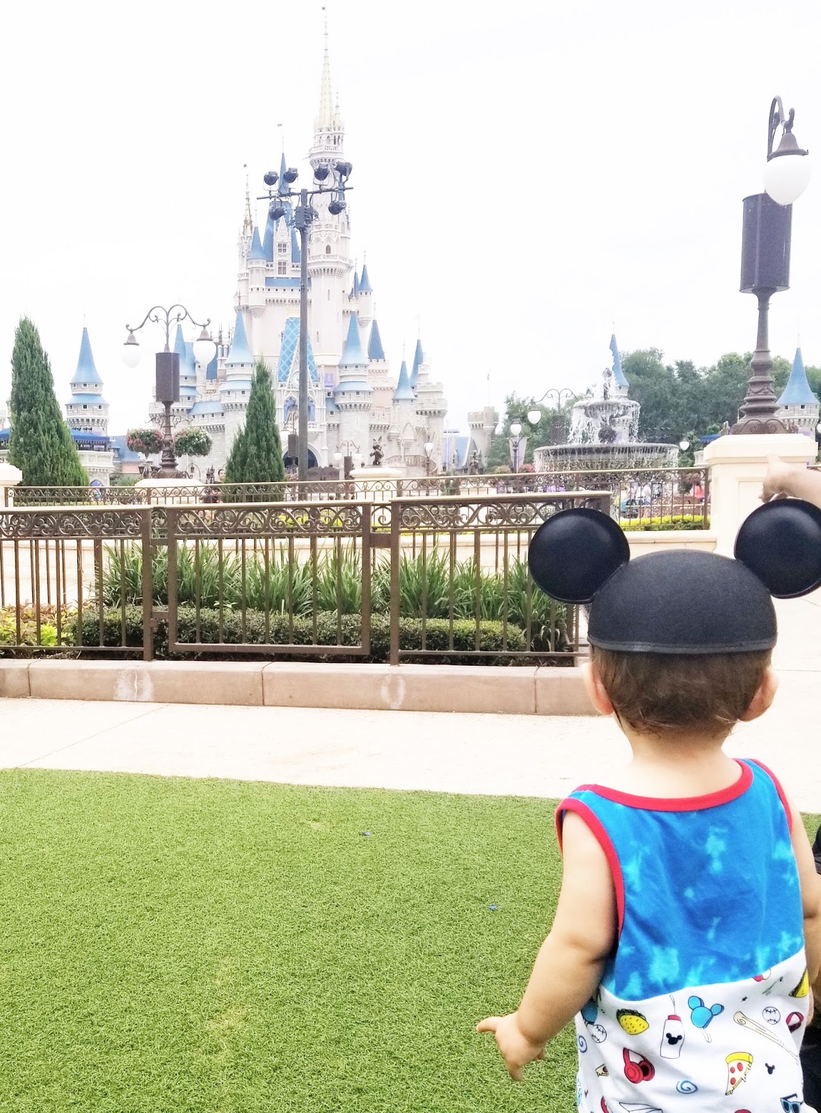 We all wore comfortable clothes (i.e. t-shirts or tanks and shorts), as do most people who visit the Disney parks. We made sure to bring hats for our son to wear to keep him protected from the sun (in addition to sunblock) and to put comfortable footwear on him since he would likely want to run around at some points.
